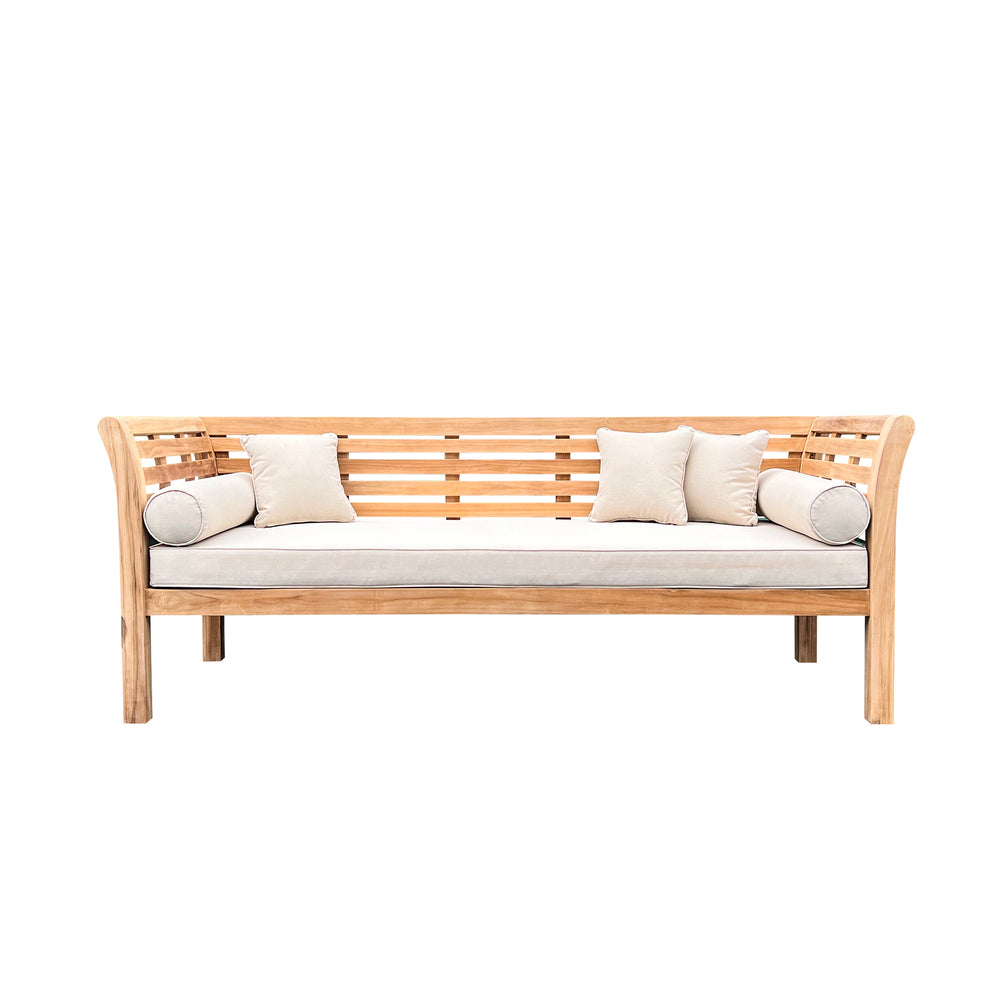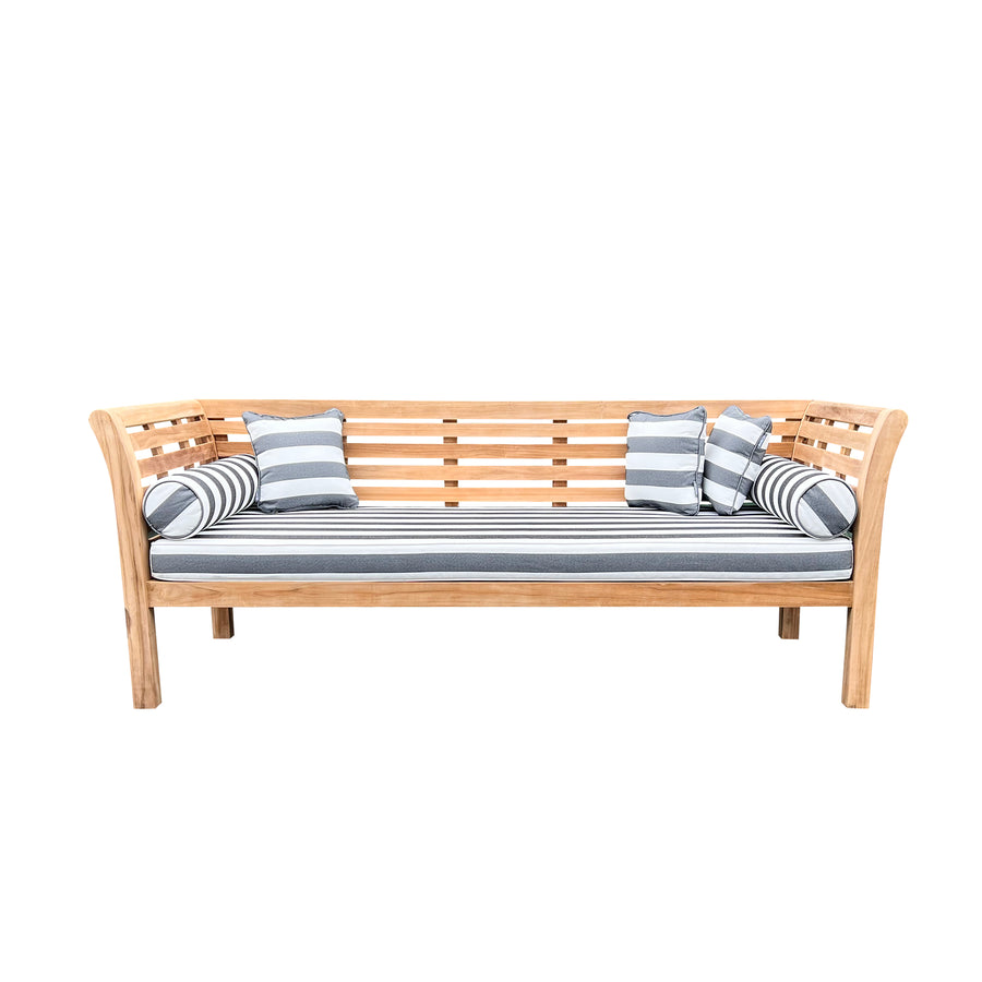 Our best seller, The IPANEMA daybed is perfect for your covered patio or pool side sunbathing. Made from solid A-Grade plantation teak, and includes Sunproof Base Cushion, Bolsters and 3 x scatter cushions.