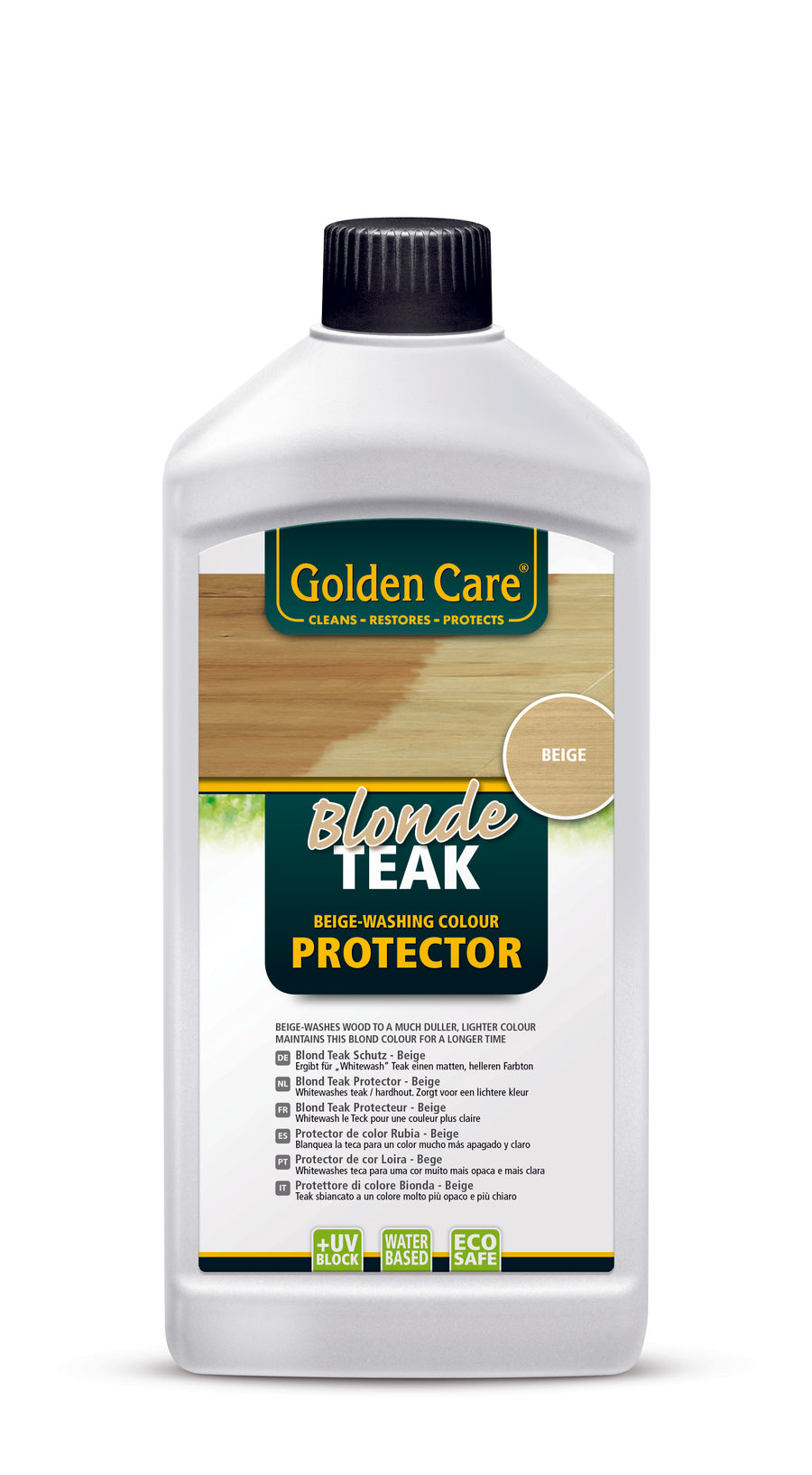 If you wish to preserve the beautiful honey color of your teak furniture, consider applying a UV protectant like Golden Care's "Honey Brown Protect." This will help maintain its rich appearance despite sun exposure.